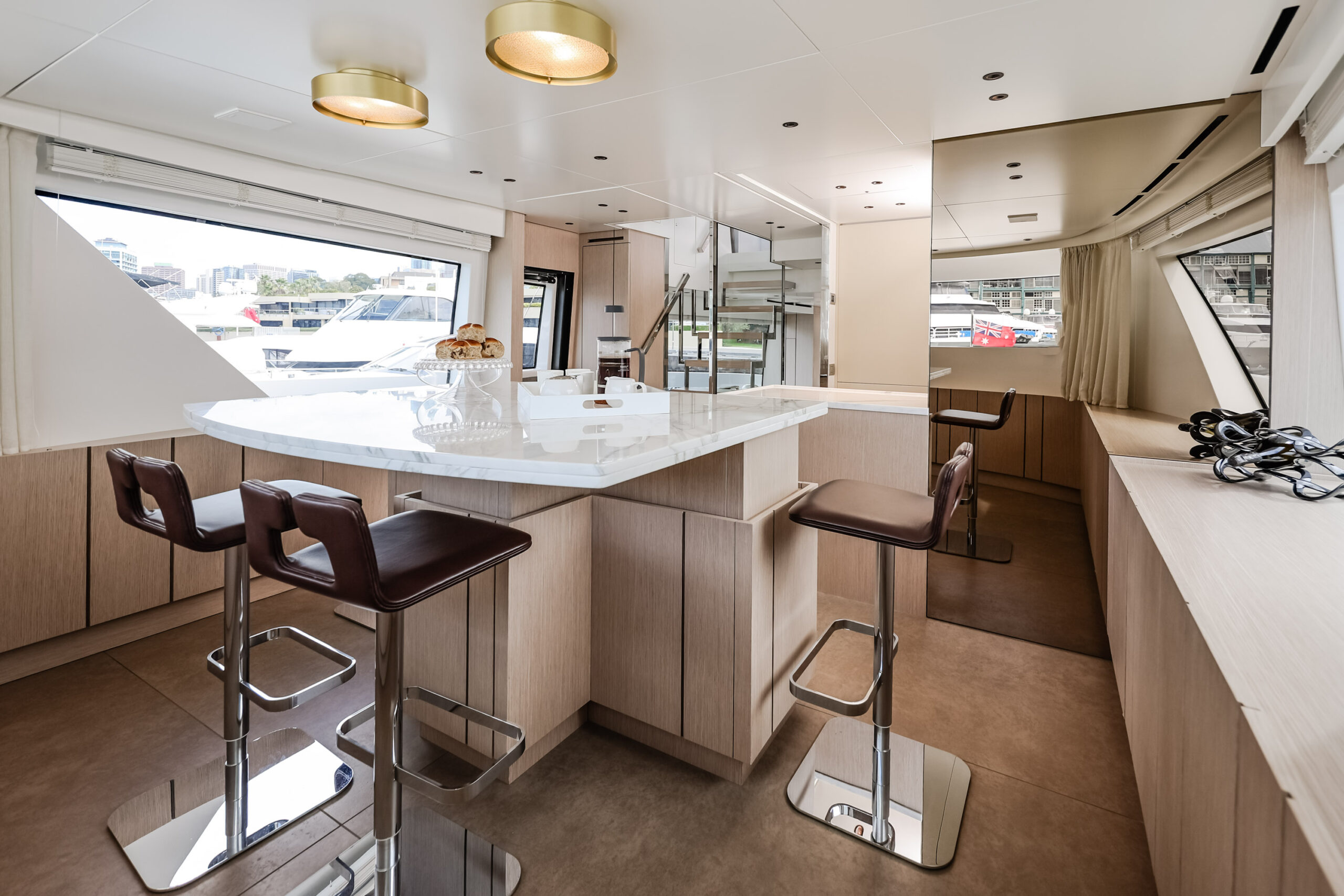 Accommodations include four luxurious ensuite guest cabins sleeping up to eight, plus crew cabin for 2 enhanced service and comfort. Every detail from the expansive flybridge to the sophisticated main deck—has been thoughtfully considered to maximize both enjoyment and connection to the sea.