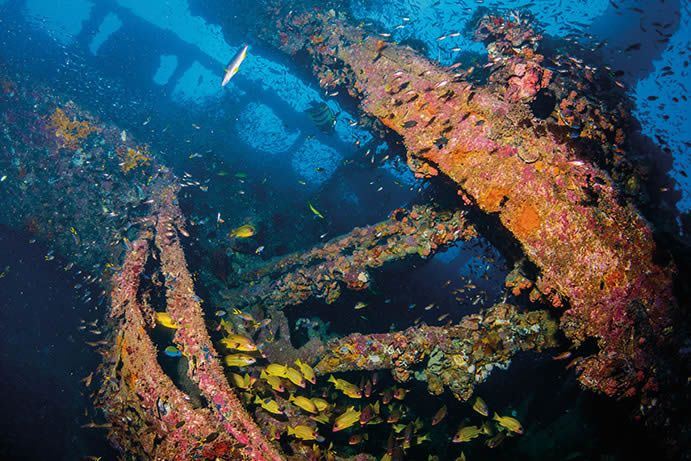 For those more interested in wreck diving, two of the most visited and extensive wreck sites in the world are the S/S THISTLEDORM in the Red Sea and the S/S YONGALA in North Queensland. The S/S THISTLEDORM which wrecked just 18 months after her launch in 1940. She was laden with a cargo of tanks, aircraft, armoured vehicles and motorbikes all of which are preserved 33 metres below the water’s surface. She was rediscovered by Jacques Cousteau and is now a revered recreational dive site.