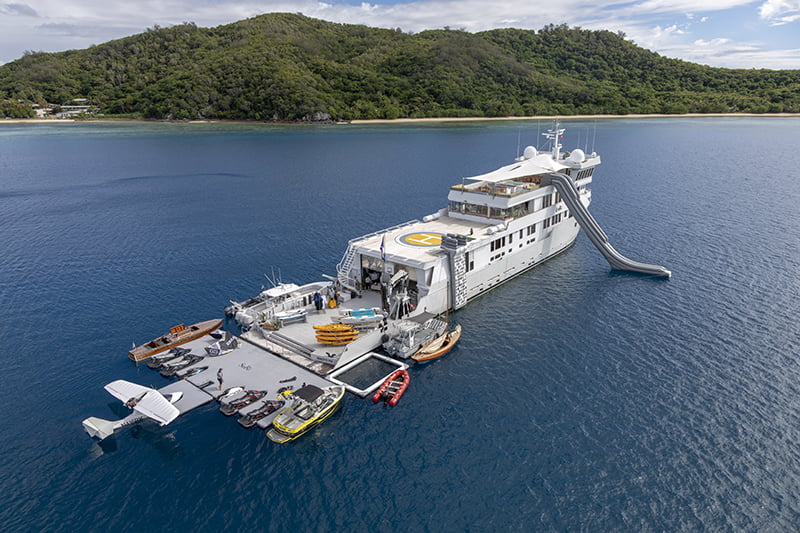 The magnificent 63m expedition superyacht is ideal for thrill seekers. She features a range of water toys and accessories, including a wakeboarding and watersport speedboat with a selection of wakeboards and skis, Zapata fly board and hoverboard, waterslides, jetskis, wave runners etc. Guests wanting to cruise the South Pacific are guaranteed to never run out of activities onboard SURI.