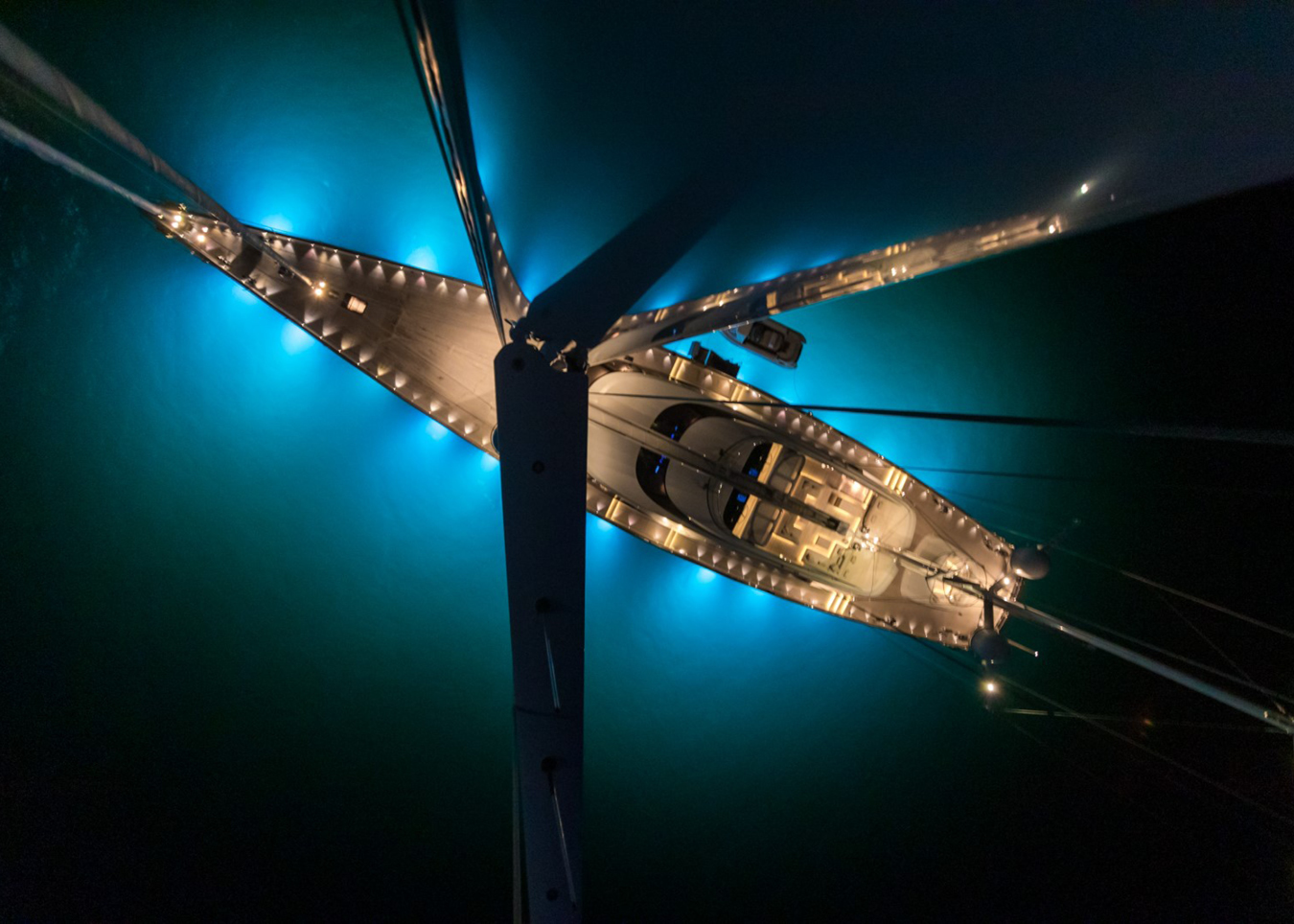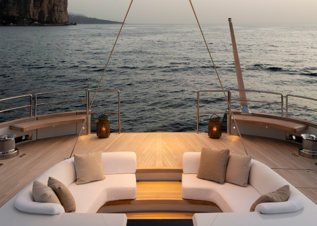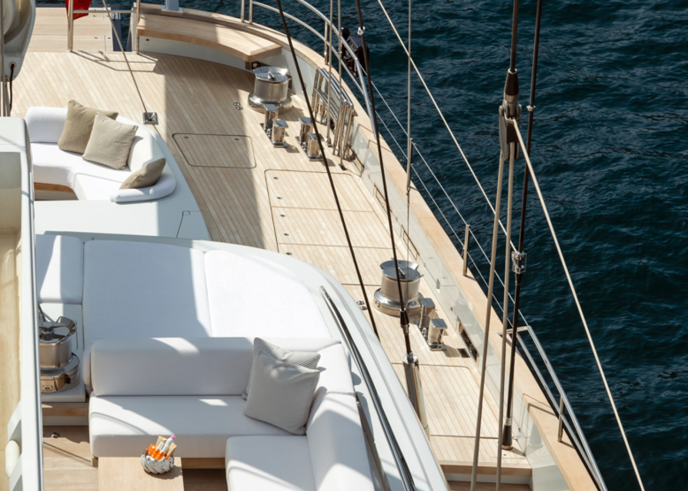 If a bit more excitement is desired, head up to the top deck, were the yacht’s racing pedigree is truly felt. The performance cruising ketch was designed to excel at all wind speeds and directions, the sails hoisted in two minutes, and she is a force to be reckoned with on the superyacht racing circuit. Yet even when rounding the buoys at high speeds, she is incredibly stable and comfortable, and she is nimble and easy to handle when in cruising mode too.